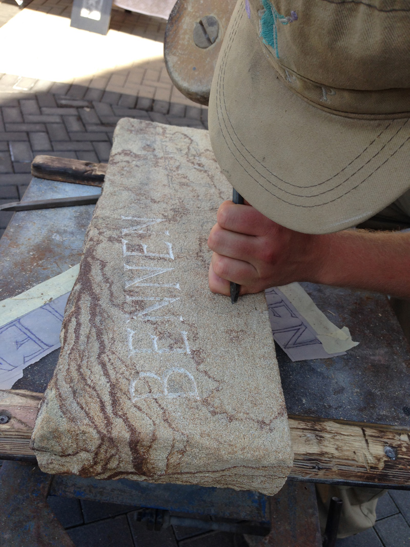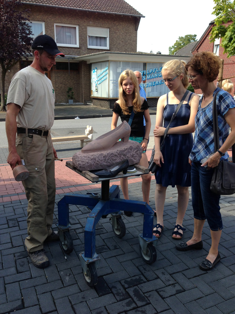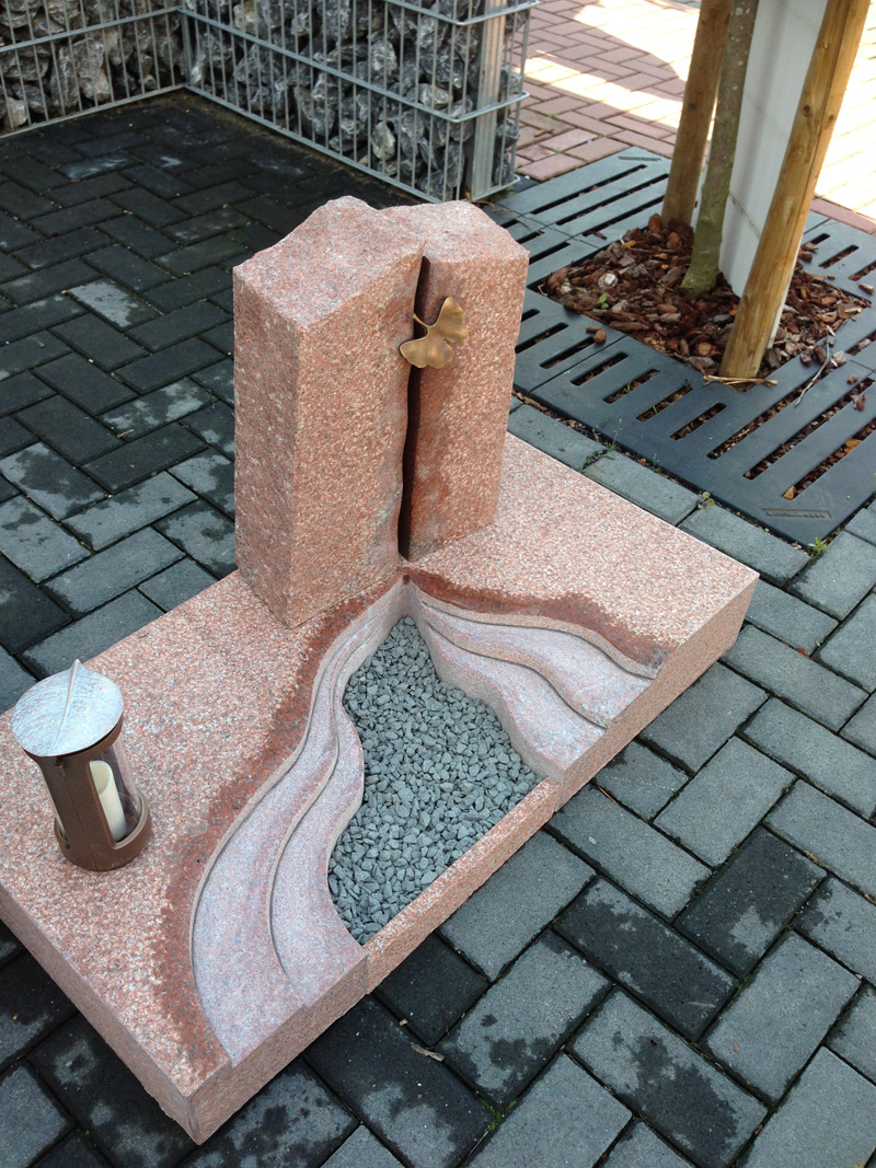 Sorgfältige Planung mit Skizzen, Modellen und computerunterstützter Lagezeichnung. Ausführung in Bronze oder Naturstein.