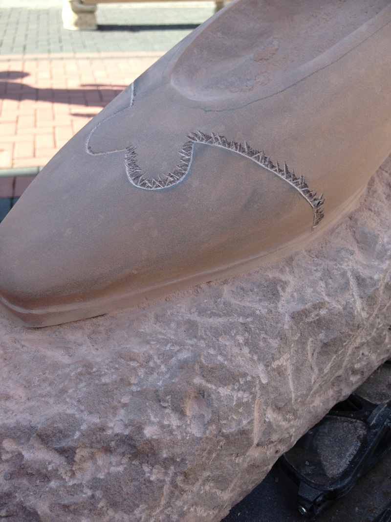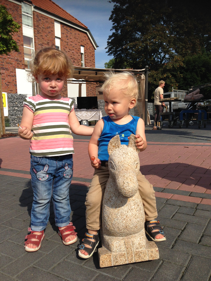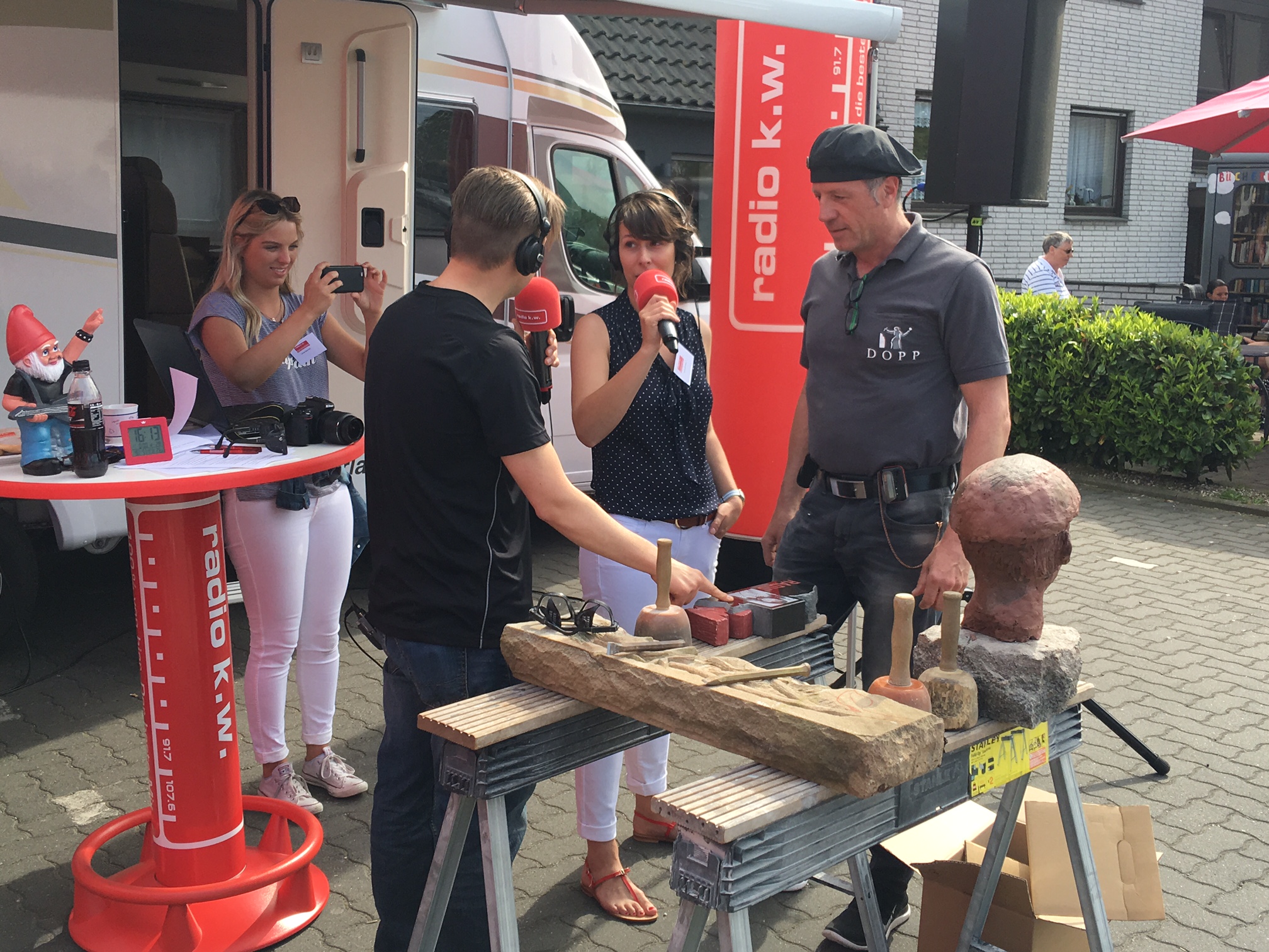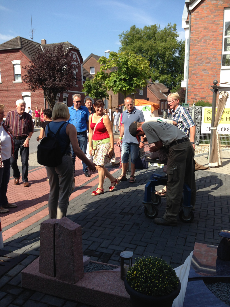 1m großer Sandstein Daumen auf der Maler Palette Eröffnung Olga Landesgartenschau Oberhausen.